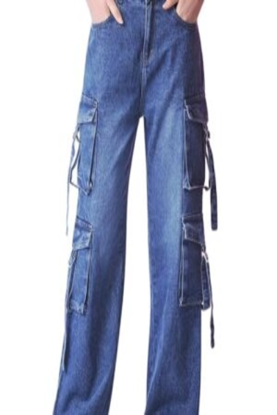 • Evening Edge: Metallic or sequined tops, strappy heels, brushed metal jewelry—let the wide leg drape over at the hem for fluid movement as you step. Cargo details bring attitude; denim holds the glamour.